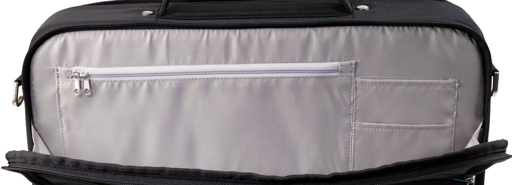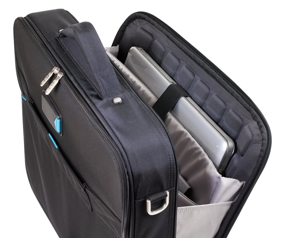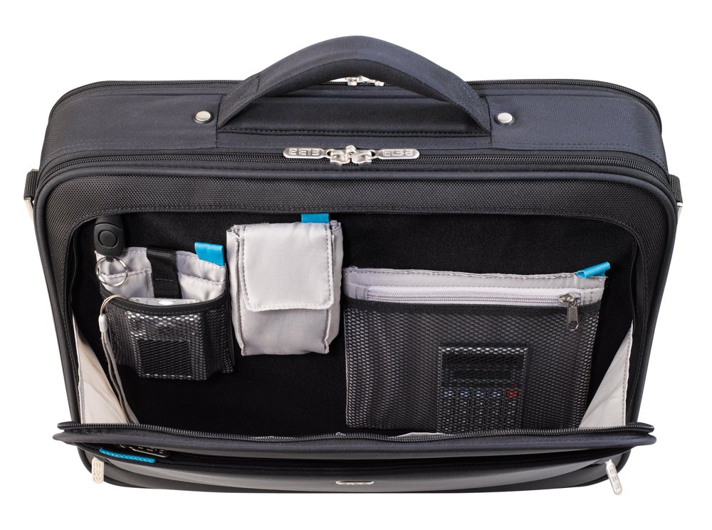 Med det fleksible systemet av poser og lommer gjør denne datavesken at du kan være bedre organisert. Rammen og polstringen i vesken er designet for å oppbevare og beskytte både en datamaskin og et nettbrett. Vesken er laget av slitesterk, vanntett polyester som beskytter eiendelene dine mot smuss og fukt. Den inne holder rom til reisedokumenter som det er rask og enkel tilgang til, lomme foran samt god plass til dokumenter. Den har en avtagbar, polstret skulderrem, stropp til trillebag, navneskilt og to metallstøtter på bunnen av vesken.