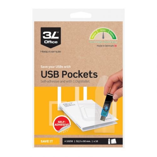 USB-lommer er den ideelle måten å lagre og beskytte USB-ene dine på. Bruk den medfølgende DigiWallet (dekselet) for å organisere USB-enhetene dine og holde dem innen rekkevidde. Selvklebende USB-lommer har en praktisk lukkeklaff som sørger for at USB-ene ikke faller ut.