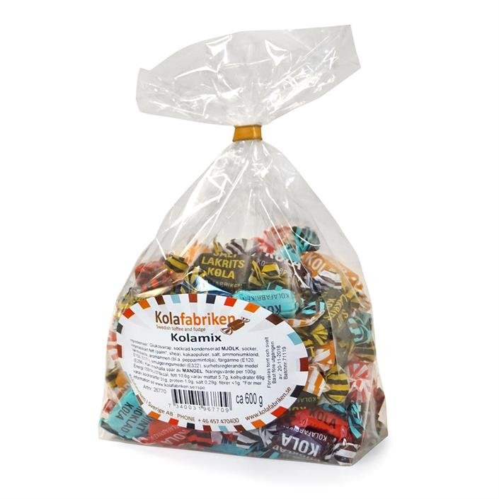 Deilige karameller fra karamellfabrikken i Ronneby, Sverige med favorittsmakene Krem, Sjokolade, Bringebær, Saltet lakris, Mynte/Sjokolade og Bringebær/Lakris.