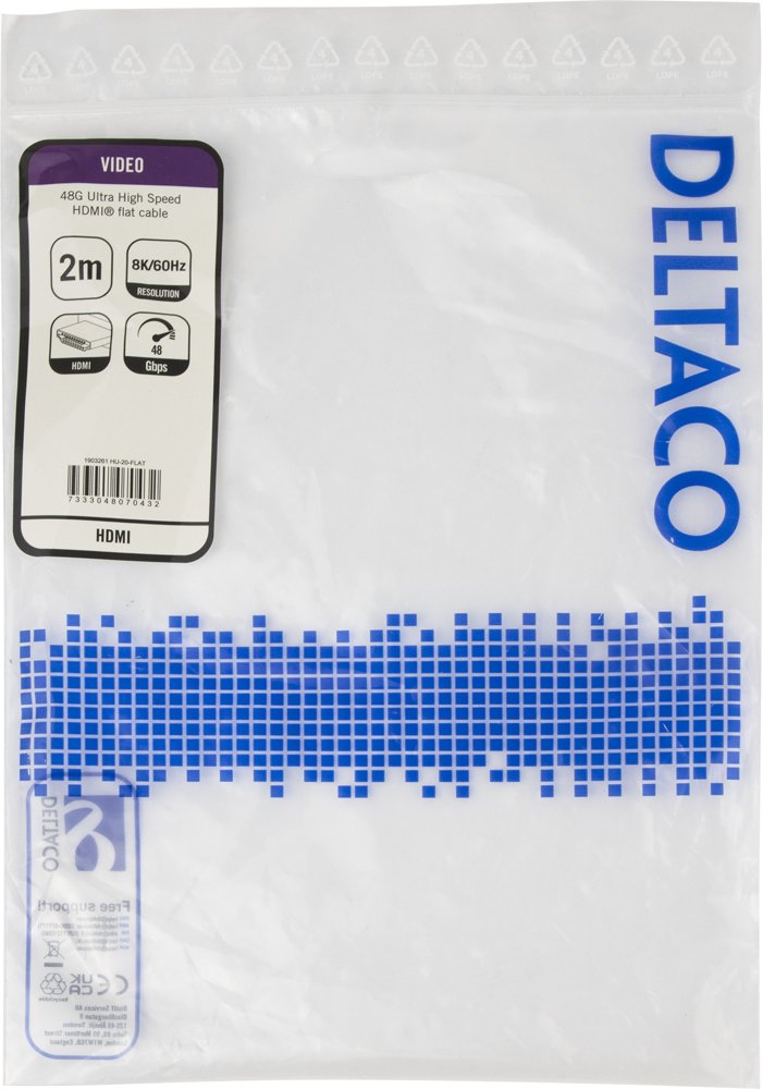 HDMI-kabel 48G 2m flat svart