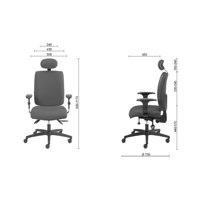 Kontorstol med et bredt utvalg av justeringsmuligheter for å sikre at stolen kan stilles inn i henhold til brukerens behov. Mykt sete, ryggstøtte og nakkestøtte. Integrert asynkron tre-spaksmekanisme. Separat justering av ryggstøtte- og setevinkel (med to spaker). Låsing i mange posisjoner. Mekanisme designet for bruk i låst posisjon. Setevinkel -3°/+5°, ryggstøtte -14°/+35°. Automatisk justering av rygghøyden. Glideplate for sete, justering av setedybde i 5 posisjoner.