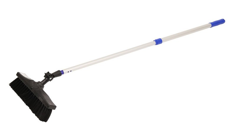 Profesjonell snøbørste med teleskopskaft (79–130 cm). Med den 30 cm brede børsten, justerbar vinkel og teleskopskaft kan du tilpasse snøbørsten etter behov. Fungerer utmerket enten du har en liten bil eller en større varebil. Du kan arbeide med tohåndsgrep og unngår å få snø på deg.