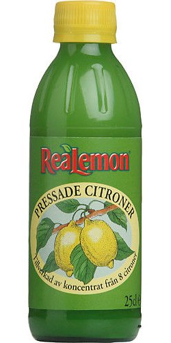 ReaLemon er presset sitron fra 8 sitroner som direkte tappes på flaske.