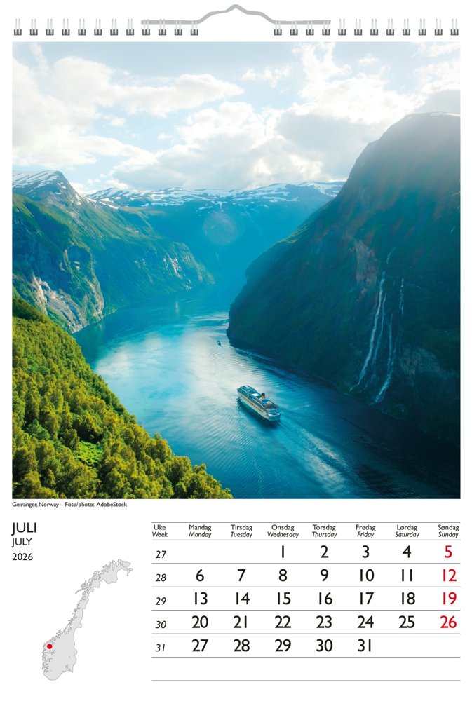 • Norsk og engelsk tekst på dager og uke