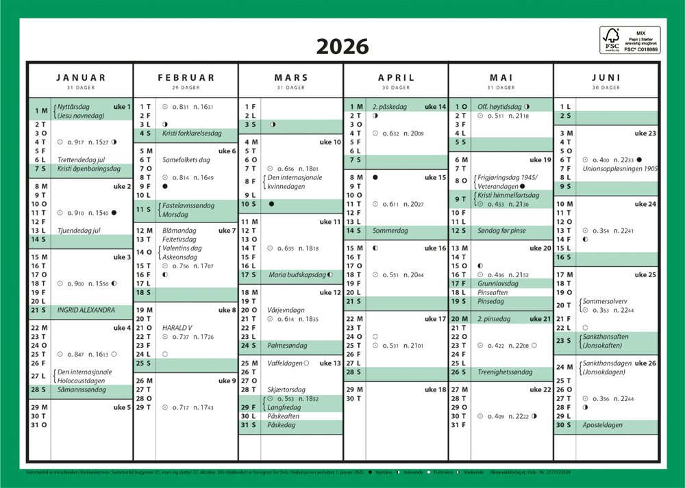 Uunnværlig oversiktskalender for kontorpulten eller hvor det måtte være