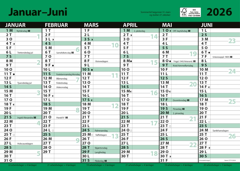 7.sans Kontorkalendere er en kalender som brukes ofte av mange. Ett halvt år pr side, gir en enkel og god oversikt. Alle er like enkle å bruke. Alle er enkle å ta med. Leveres i stiv kartong for ekstra holdbarhet.