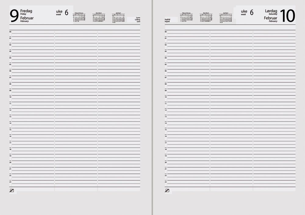 7.sans Natt og Dag gir deg 24 timer 365 dager i året i A4 format. Her har du ett produkt som er favoritt hos mange. Mange bruker den som en personlig notatbok. Natt & dag blir i mange tilfeller brukt som et fellesprodukt, hvor flere personer gjør notater i samme bok. Brukes av mange bedrifter med behov for å notere ifm skift arbeide etc.