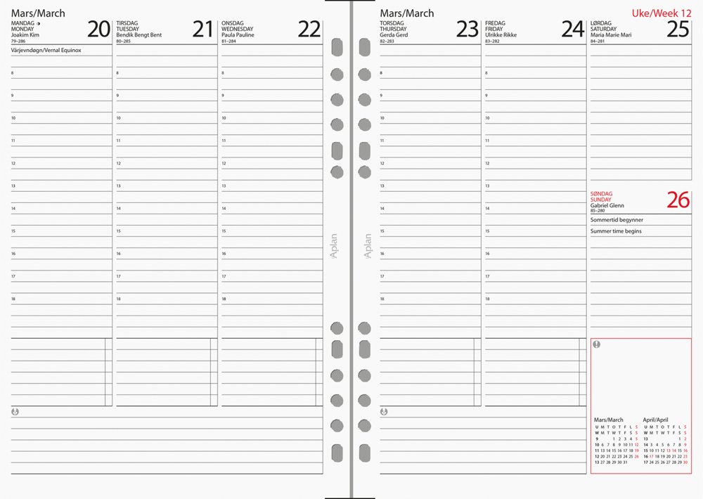 Praktisk års-sett for din Aplan perm.Unihulling gjør at det passer i de fleste permer, også Filofax samt Grieg.