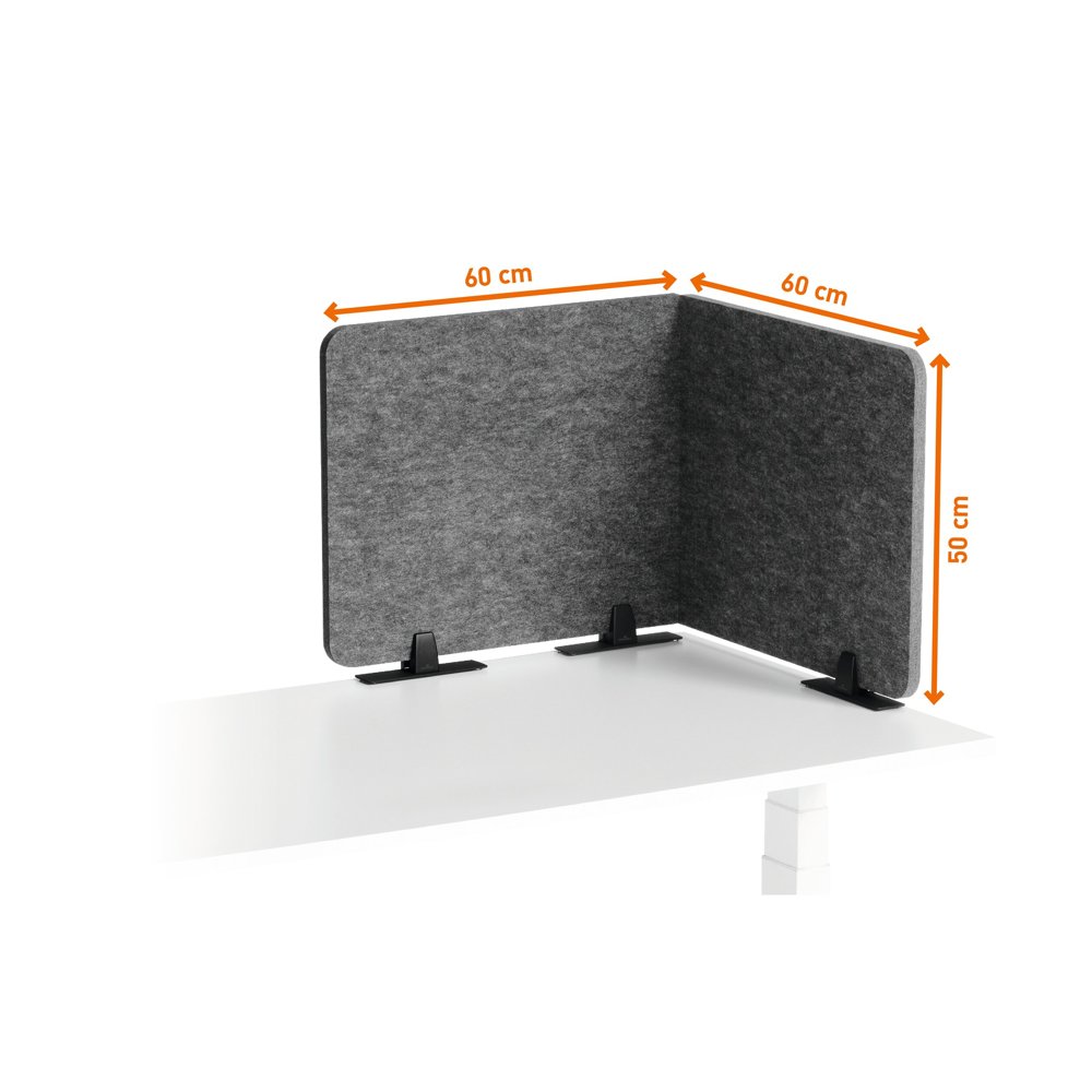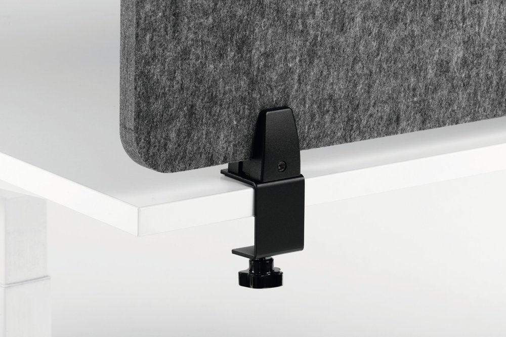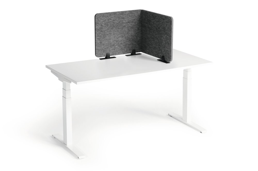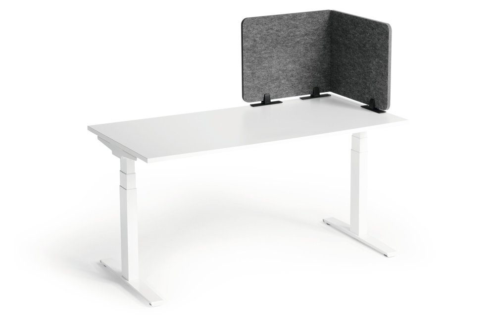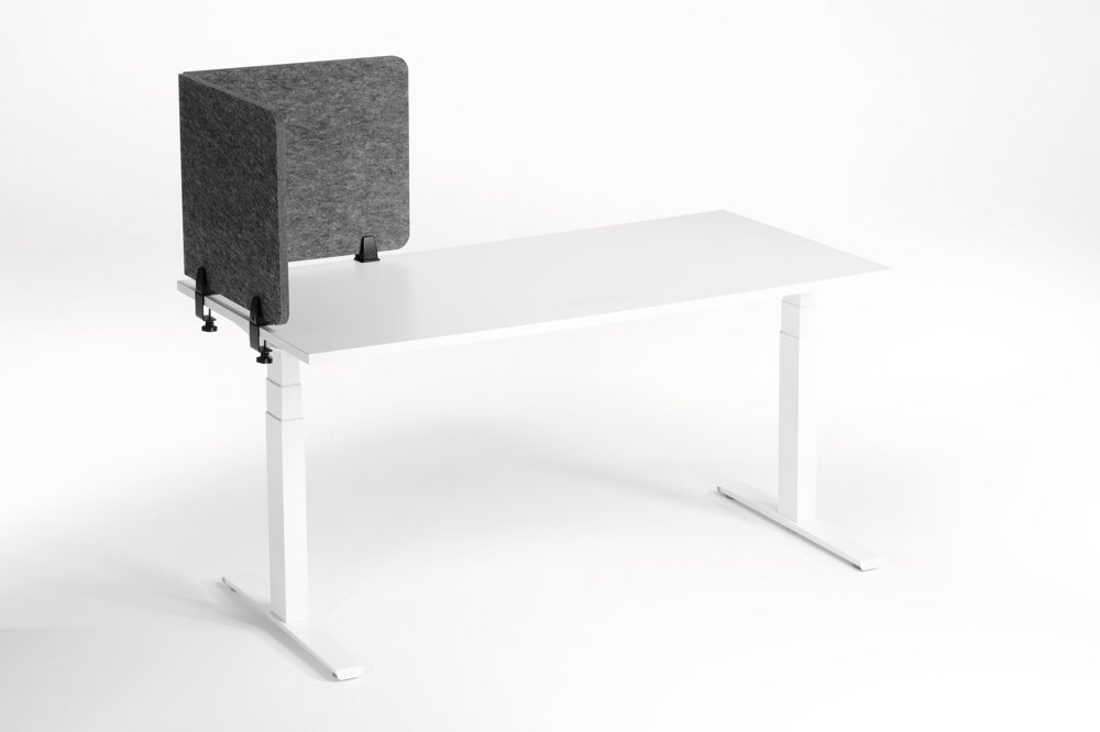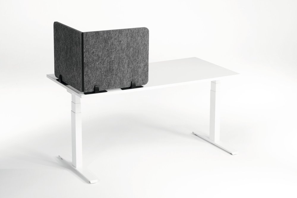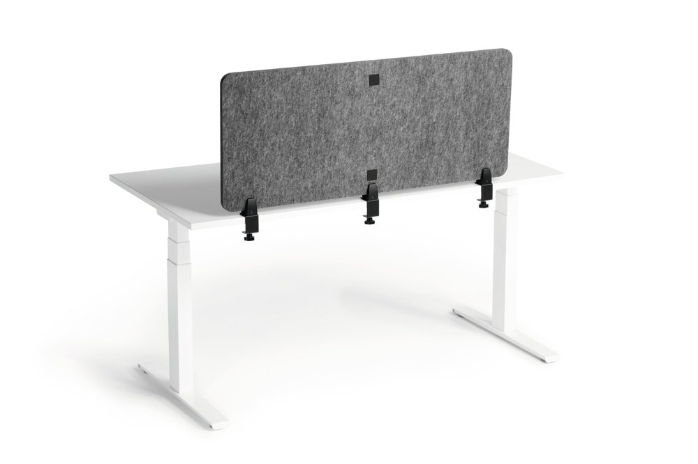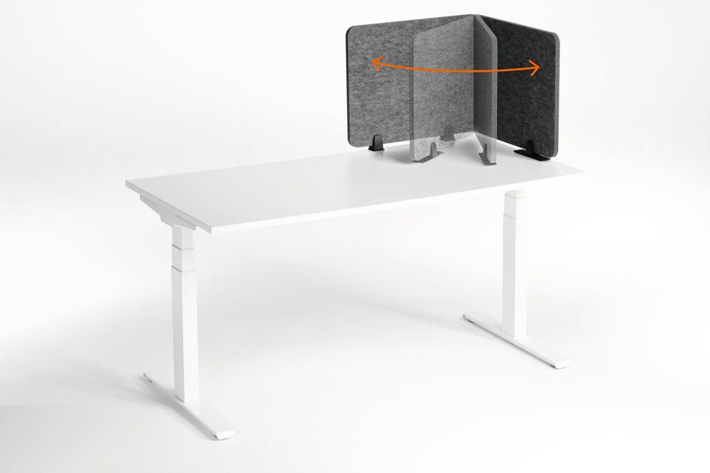 • Sammenleggbar bordskjerm laget av resirkulert PET-filt for effektiv avskjerming og lyddemping av arbeidsplassen. Trinnløs justerbare vinkler og ulike monteringsmuligheter.