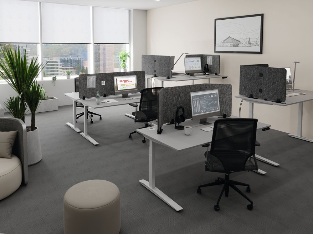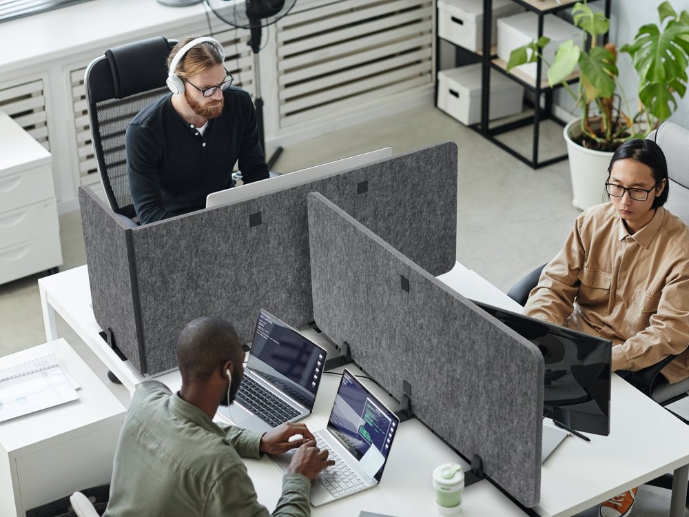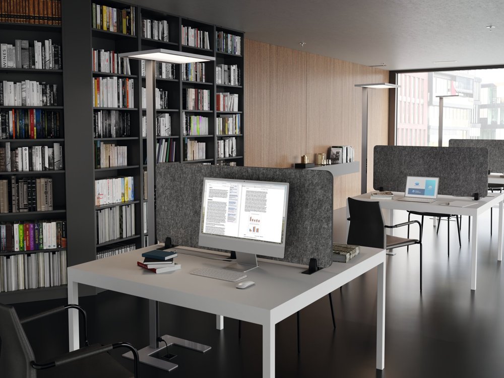 • Gir en personlig avgrensning av arbeidsplassen og bedre akustikk som reduserer forstyrrende støy.