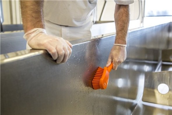 Denne skrubbebørsten har et kort, ergonomisk håndtak for enkel og effektiv daglig rengjøring og er perfekt for å fjerne gjenstridig smuss fra transportbånd, produksjonslinjer, maskineri og klargjøringsflater.
