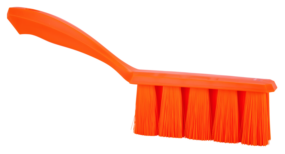 ULTRA SAFE TECHNOLOGY benkbørste med middels harde filamenter. Børsten egner seg til å feie fuktige partikler fra transportbånd, overflater i kontakt med mat, bord og annet utstyr i hygieneområder. Plasseringen av filamentene sikrer effektiv rengjøring av fine tørre partikler.