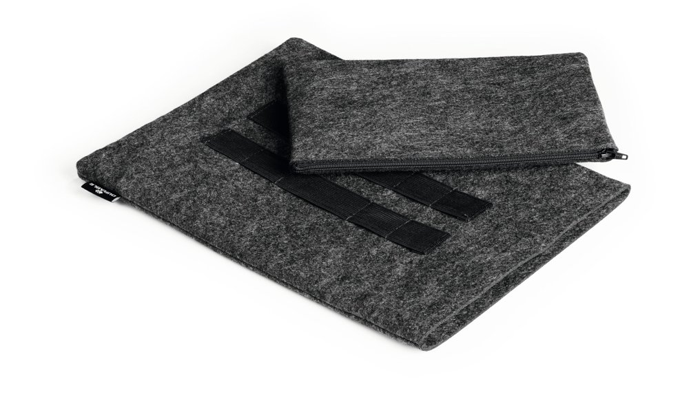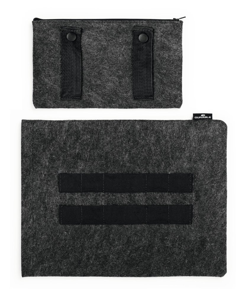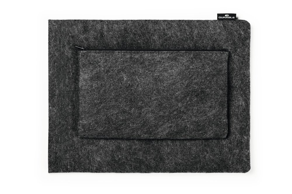 • Beskyttelsesdeksel for nettbrett eller bærbare datamaskiner laget av 60 % resirkulert PET-filt, kombinert med ekstra tilbehørsveske.