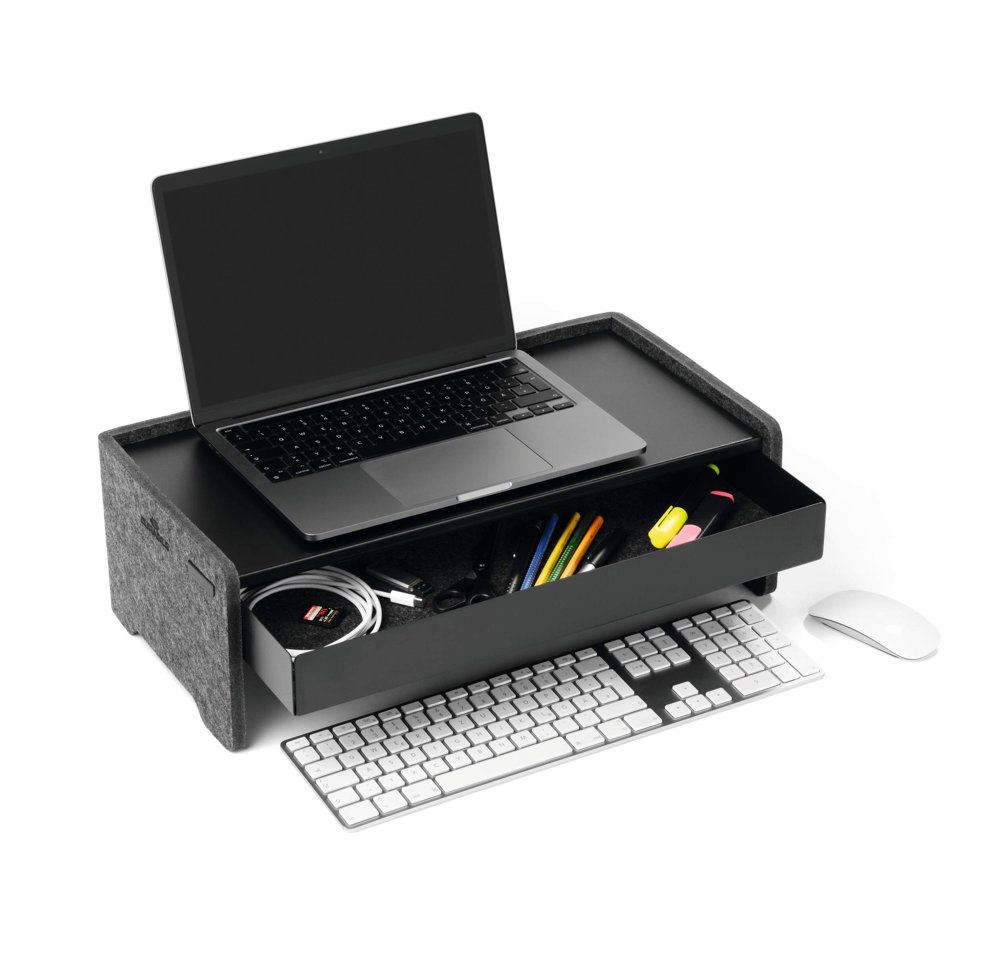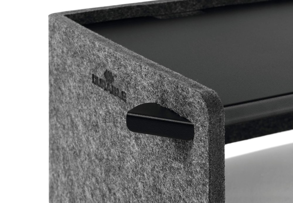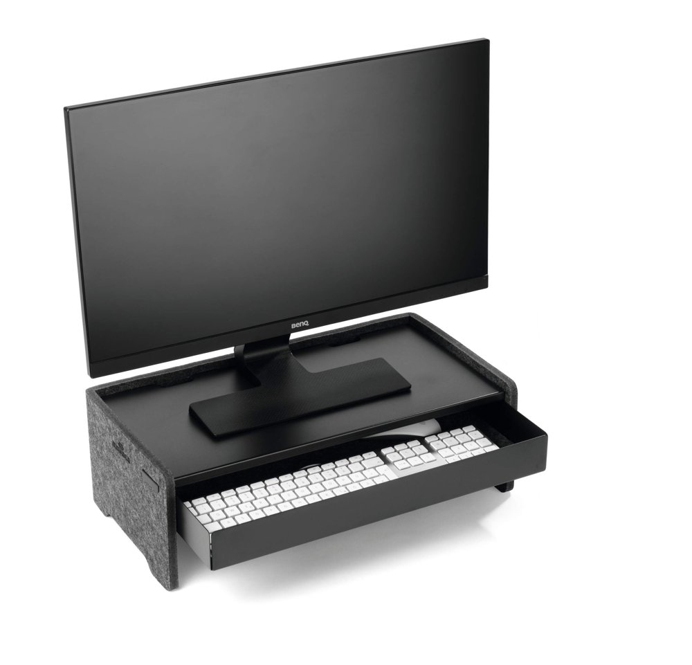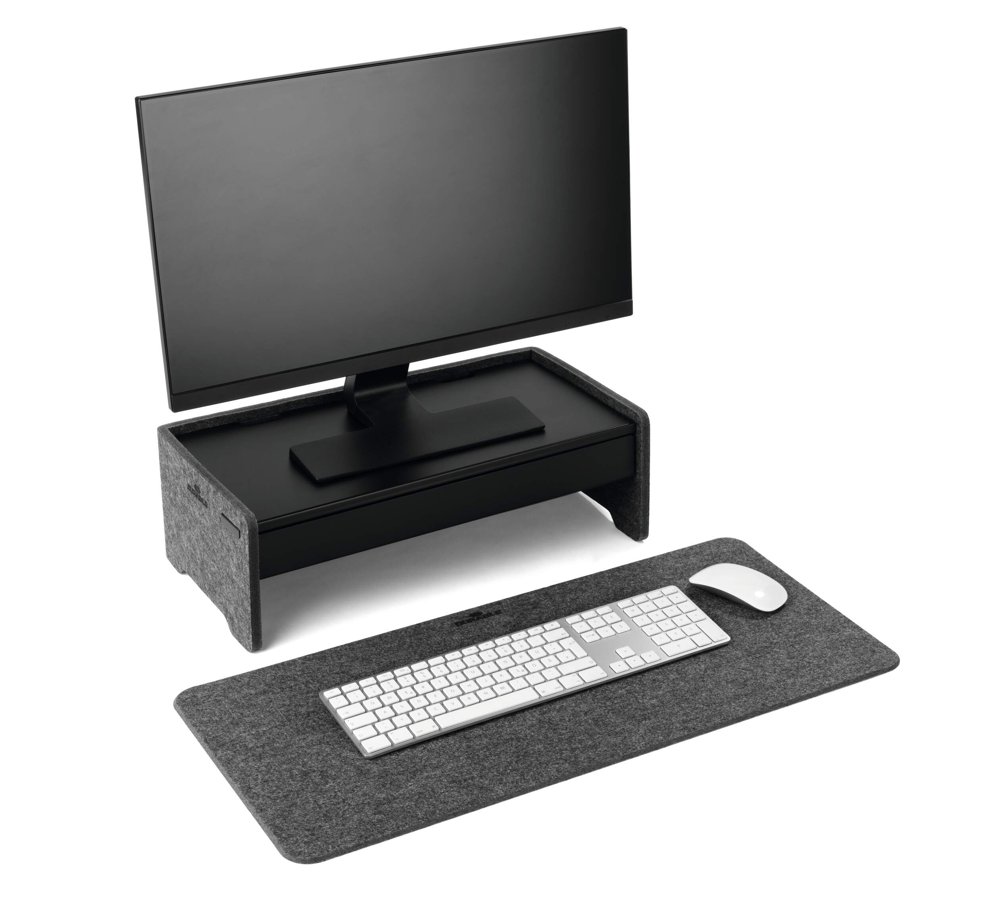 • Ergonomisk skjermstativ, justerbar i tre høyder. Laget av 60 % resirkulert PET-filt.