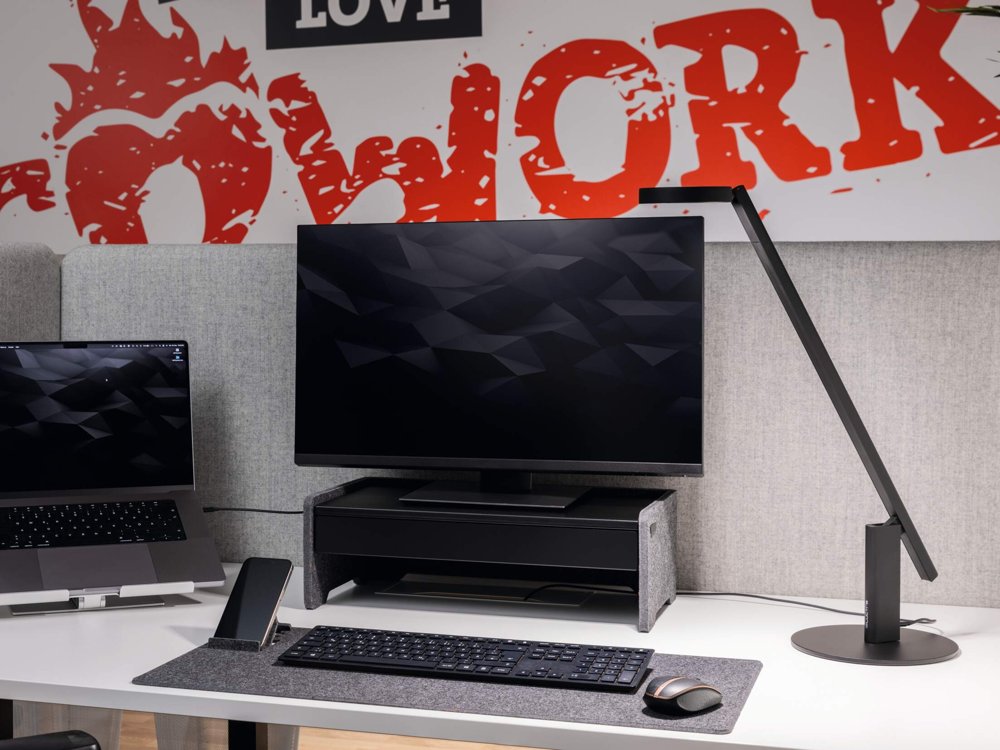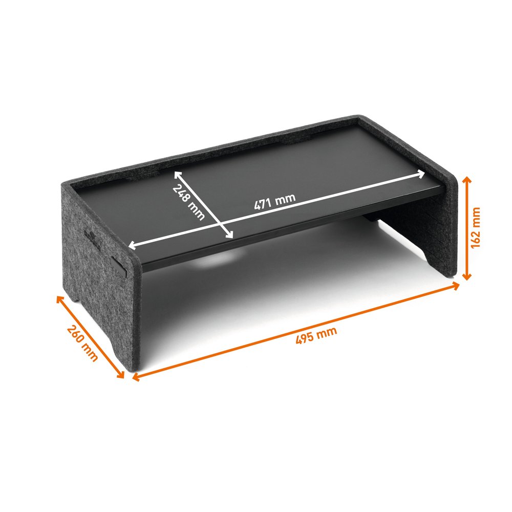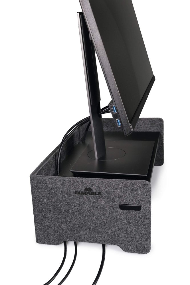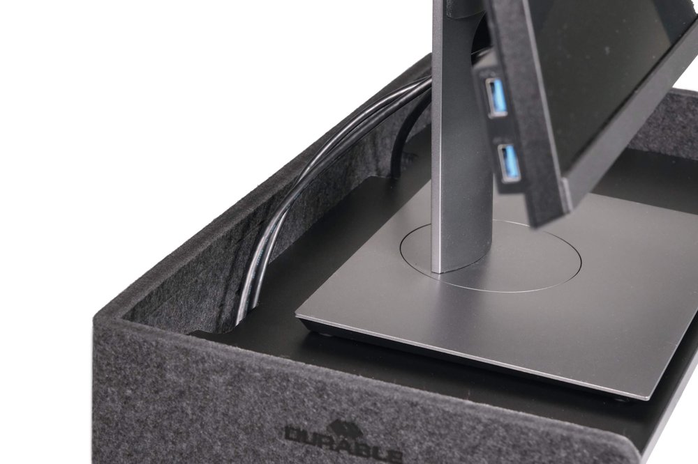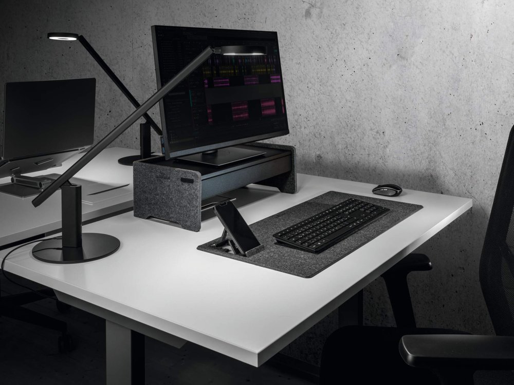 • Ergonomisk skjermstativ, justerbar i tre høyder. Laget av 60 % resirkulert PET-filt.