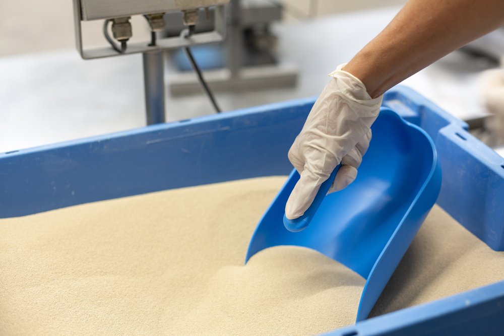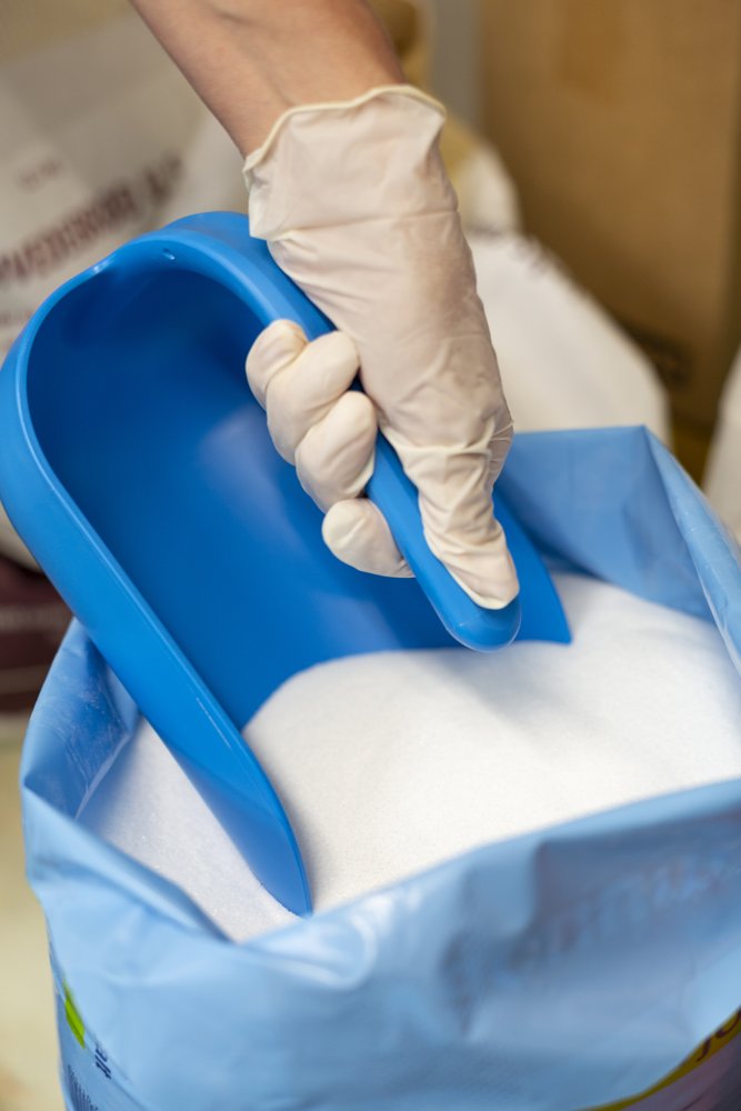 våde fødevarer. Håndtaget på skovlen er placeret så det giver en perfekt
