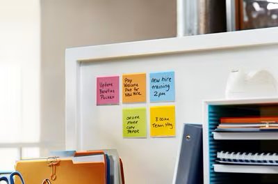 Post-it® Super Sticky Meeting Notes har dobbelt så sterk klebeevne (sammenlignet med de originale Post-it® Notes). Perfekte for vertikale overflater og overflater det er vanskelig å feste noe på, er disse supersterke, ekstremt allsidige lappene designet for at dine beskjeder skal skille seg ut.