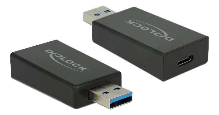 Konverter USB 3.1 Gen 2 USB-A hann til USB-C hunn, 10 Gbps (USB 3.1 Gen 2), aktiv, svart. Denne konverteren fra Delock lar deg koble en enhet med USB-C hannkontakt til en USB-A hunnkontakt.