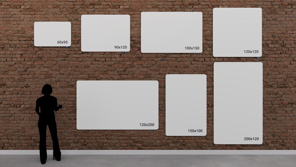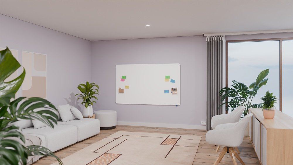Det geniale monteringssystemet skaper et moderne utseende i rommet og får tavlen til å se ut som den svever på veggen.