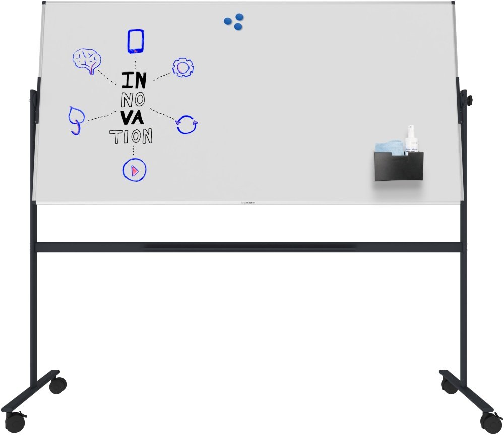 • Montert på et solid og mobilt tavlestativ med 360° svingfunksjon og 4 hjul (2 låsbare)