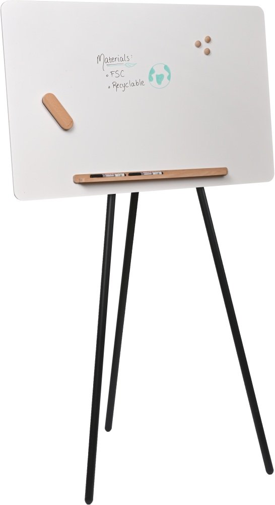 • Den magnetiske papirholderen i naturlig tre og pennehyllen kan fjernes og oppbevares på baksiden av tavlen