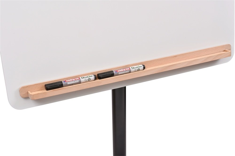 • Den magnetiske papirholderen i naturlig tre og pennehyllen kan fjernes og oppbevares på baksiden av tavlen