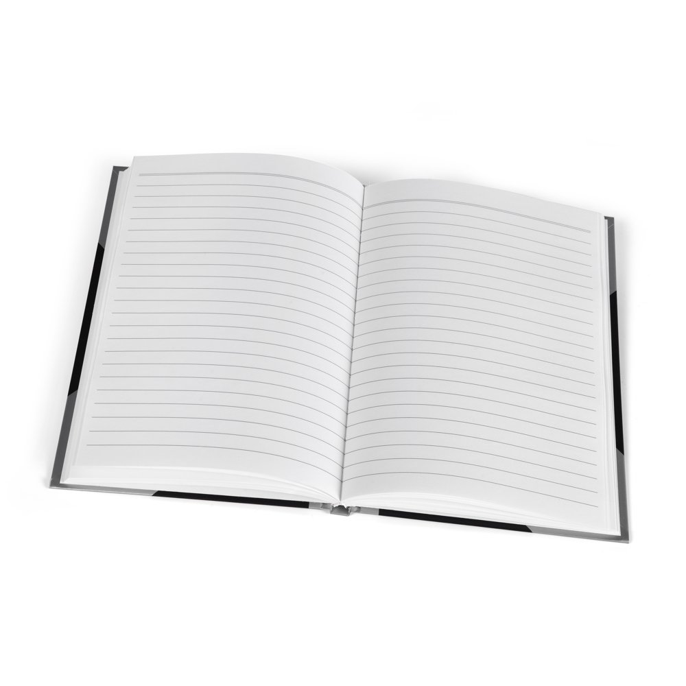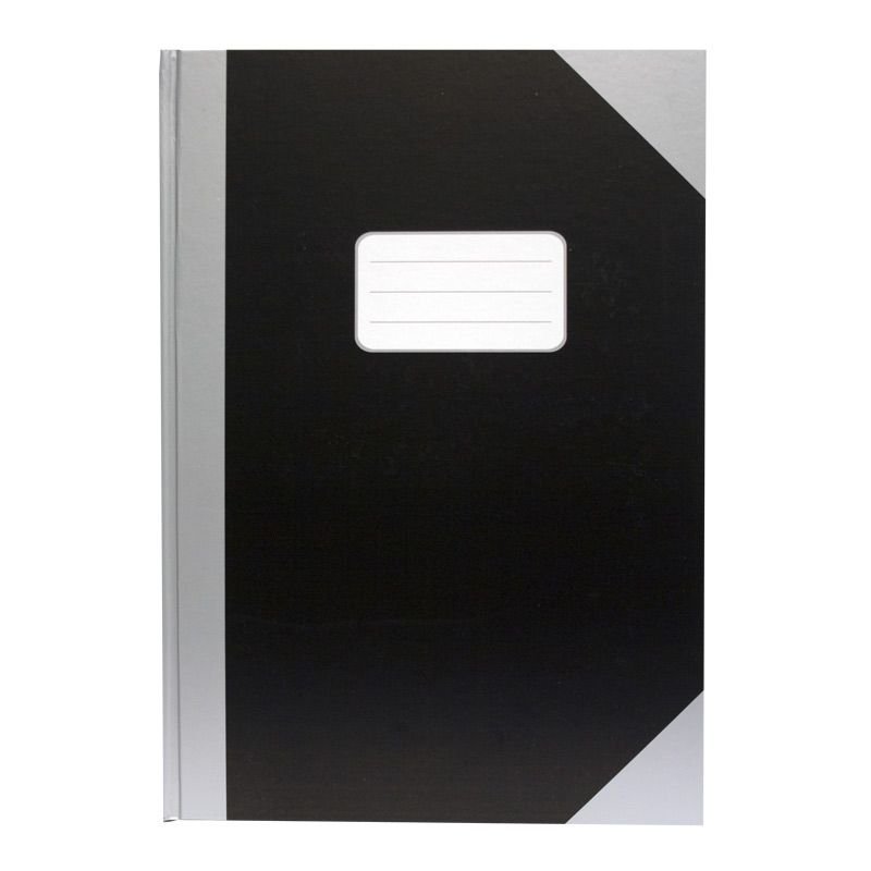 Notatbok med 70g papir og kraftig omslag i matchende sort og sølv. Med forhåndstrykket etikett på forsiden. Inneholder 78 ark/ 156 sider.