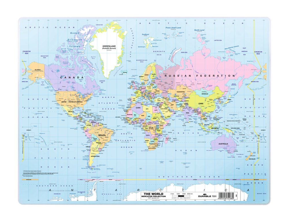 Skrivebordsunderlag 50x38cm verdenskart PP