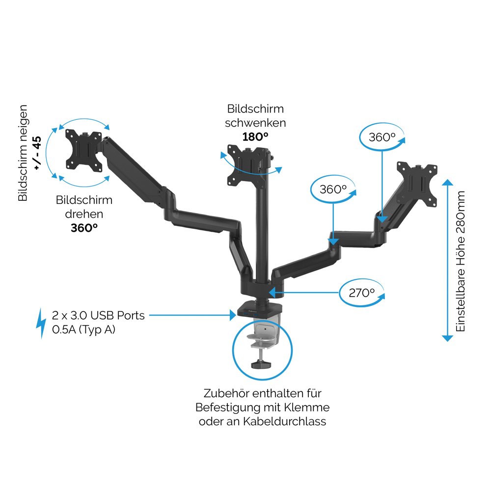 Et praktisk valg for ergonomisk plassering av skjermene og frigjører plass på skrivebordet.