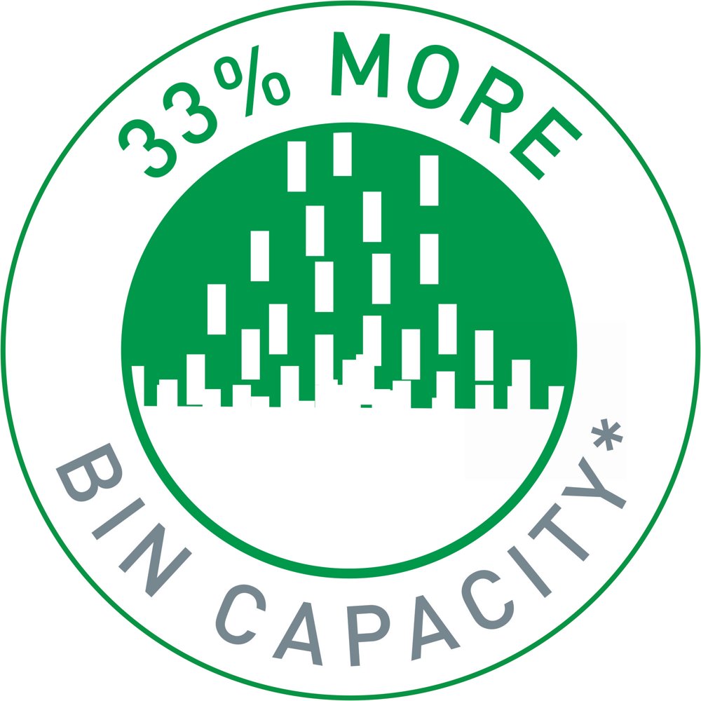 • Unik Bin Rotation Technology (BRT) maksimerer beholderkapasiteten +33 %* og reduserer betydelig rot ved tømming. *Leitz IQ OptiMax testet med og uten roterende beholderteknologi.