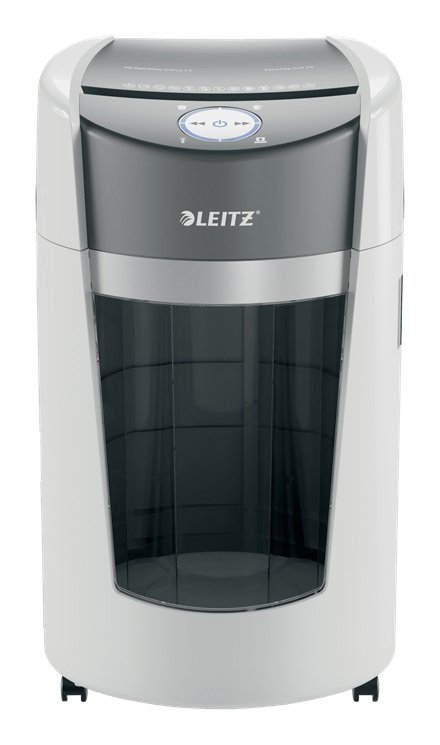 Leitz IQ OptiMax makuleringsmaskin gir en innovativ og stilig makuleringsløsning, samtidig som den sikrer eksepsjonell dokumentsikkerhet og trygghet. Denne P5-makuleringsmaskinen med høy sikkerhet makulerer enkelt opptil 10 stk. A4-ark om gangen til mikrokuttede biter. IQ OptiMax har en unik roterende beholderteknologi (Bin Rotation Technology (BRT)), som effektivt maksimerer kapasiteten med +33 %*. Den roterende beholderen sikrer flat og jevn papirfordeling. hindrer papirbitene fra å danne en topp i beholderen; slik at ytterligere 140 A4-ark kan makuleres før den må tømmes. BRT betyr at det ikke er nødvendig å fjerne eller riste beholderen; indikatoren "full beholder" aktiveres bare når den når 100 % av sin kapasitet. Den sjenerøse 35L beholderen rommer opptil 550 makulerte A4-ark, og lyser blått under bruk for en ultimat makuleringsopplevelse. Det intuitive LED-displayet inkluderer røde varselsindikasjoner for forskjellige tilstander, som for eksempel beholderen er full (og må tømmes) og døren på maskinen er åpen. Leitz IQ OptiMax er allsidig og passer ethvert arbeidsmiljø på grunn av sin ultra-stille drift, elegante design og imponerende holdbarhet. Kontinuerlig driftstid på 120 minutter. Hvit farge.