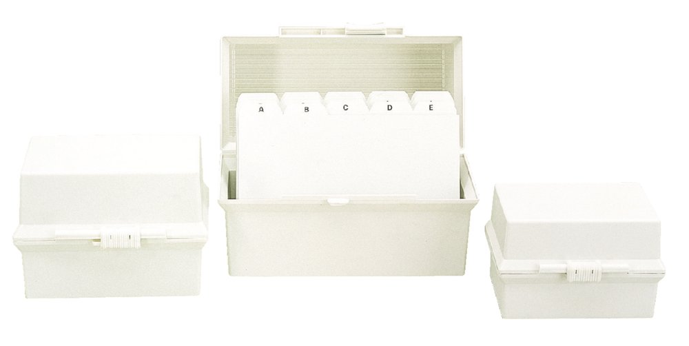 Plass til 250 kort pluss indekskort. Boks og lokk har samme dybde, for å doble kapasiteten.