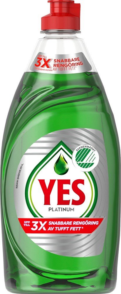Yes Platinum gjør oppvasken din skinnende ren raskt og enkelt. Med sin ekstra sterke formel fjerner den fett og matrester opptil tre ganger raskere enn andre merker. En liten dråpe holder lenge og løser opp selv vanskelig smuss uten problemer. Oppvaskmiddelet virker også i kaldt vann, slik at du kan vaske opp effektivt og samtidig spare energi. Perfekt for deg som vil bli ferdig med oppvasken raskt og unngå å slite med vanskelige flekker. I tillegg er Yes Platinum Swan-merket, flasken er resirkulerbar og innholdet består av 95 % biologisk nedbrytbare ingredienser.