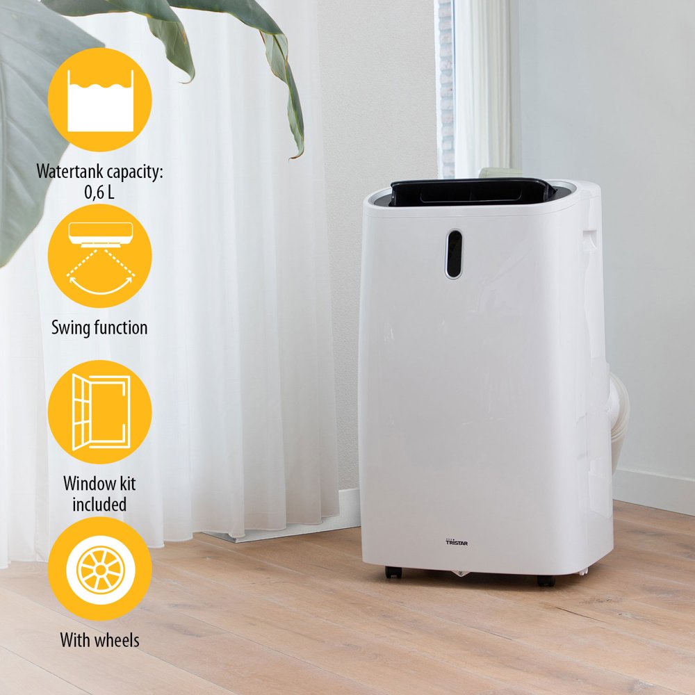 Tristar AC-5552 er et kompakt og fleksibelt klimaanlegg som raskt og effektivt senker temperaturen i hjemmet eller på arbeidsplassen og gir deg et behagelig inneklima hele året.