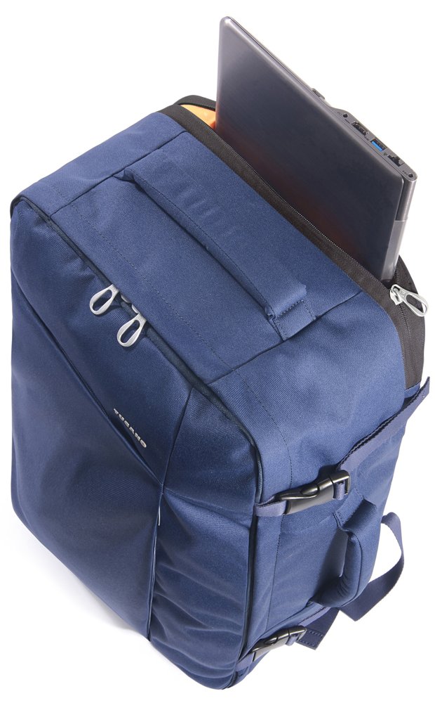 Slitesterk nylon med glossy overflate. Et rom med ekstra polstring beskytter laptopen. Innenfor målene som kabinbagasje. Kan brukes som bag og ryggsekk. 20L. Mål 30x9x39,5 cm. Vekt 699g.