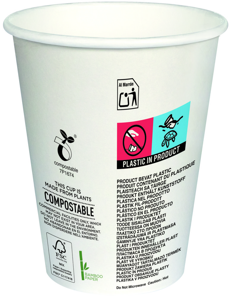 Hot Cup Beger 235ml (8oz) Ø 80mm bambuspapir/PLA