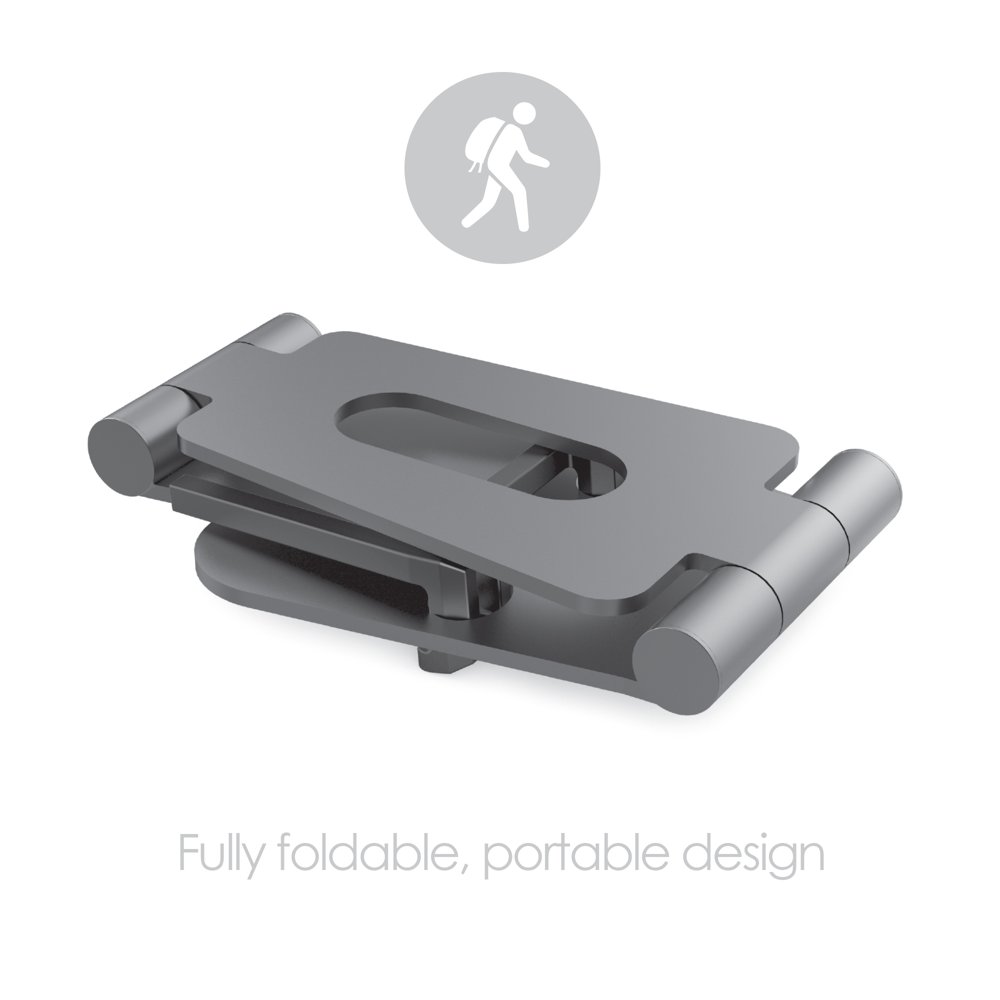 Desire2 View My Screen Anywhere bordstativ for smarttelefoner og nettbrett. Premium aluminiumslegering i en leddet ergonomisk design. Fullt roterbar gir optimal visning for din smarttelefon eller nettbrett. Presisjonsfreste utskjæringer for ladekabel. Taktil silikon for stabilt grep.