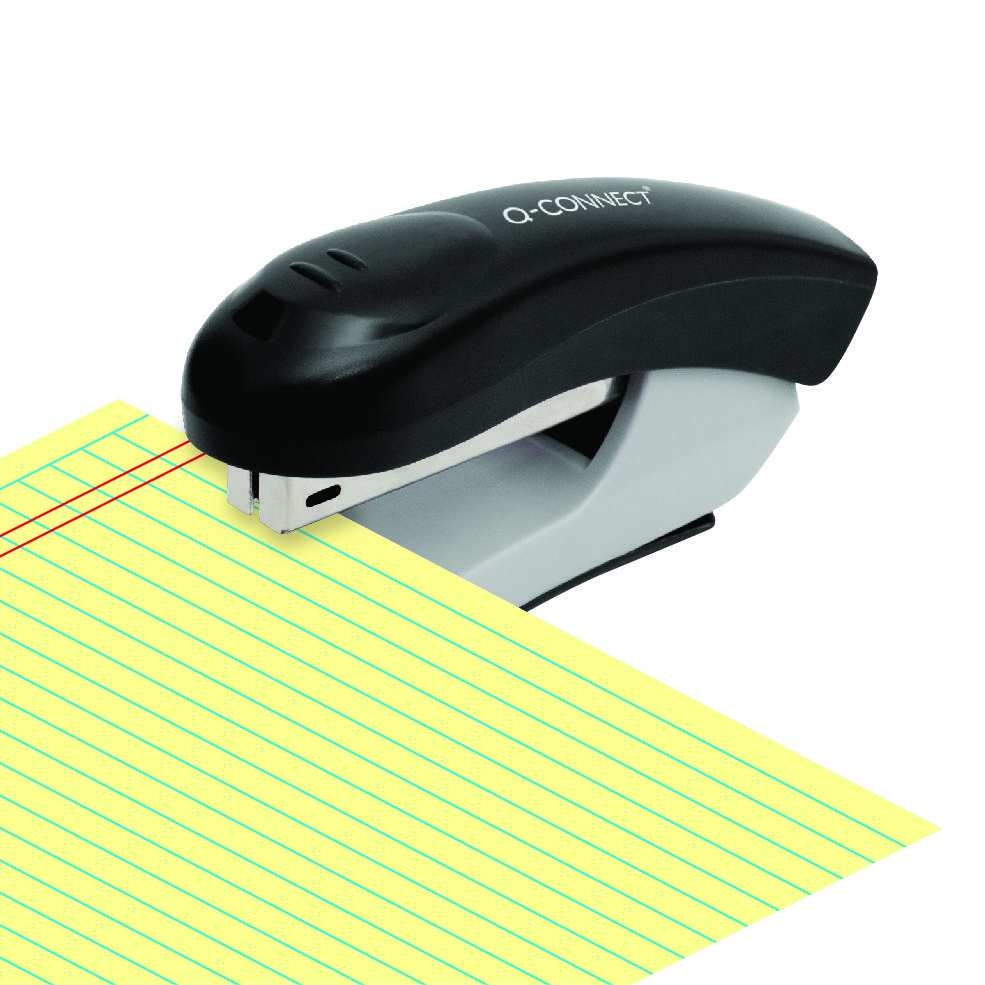 Q-Connect halvstrips plaststifter. Produsert av ABS med innvendig metallchassis for ekstra styrke. Kan brukes med stifter nr. 26/6 og 24/6, med en kapasitet på 20 ark og en stiftedybde på 55 mm.
