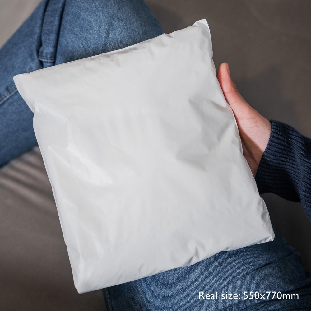 Q-Connect Hvite, ugjennomsiktige postposer med svart innside, laget av 100 % resirkulert materiale. 3-lags slitesterk PE-film 50 mikron. Kurérposene er slitesterke, vanntette og motstandsdyktige mot rifter og punkteringer. De har en sterk selvklebende lukking med én stripe. Posens dimensjoner: 550 x 770 mm. Eske med 100 stk.