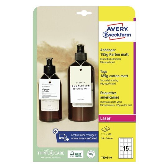 Skal produktet ditt være et blikkfang? Da har Avery det du trenger! Bruk merkelapper til produktmerking i stedet for vanlige standardetiketter. Produktet snakker for seg selv, og den nødvendige informasjonen er angitt på produktetiketten. Passer perfekt til f.eks. produktmerking. Enten det er i detaljhandelen, industrien eller privat: Averys lapper er laget av hvit kartong av høy kvalitet og kan brukes på en rekke forskjellige måter, f.eks. som: Produktetiketter til produktmerking, varemerking til f.eks. mat, drikkevarer, kosmetikk, klær og planter, gavemerker, pakkemerker til kvalitetssikring eller materialflytidentifikasjon.
