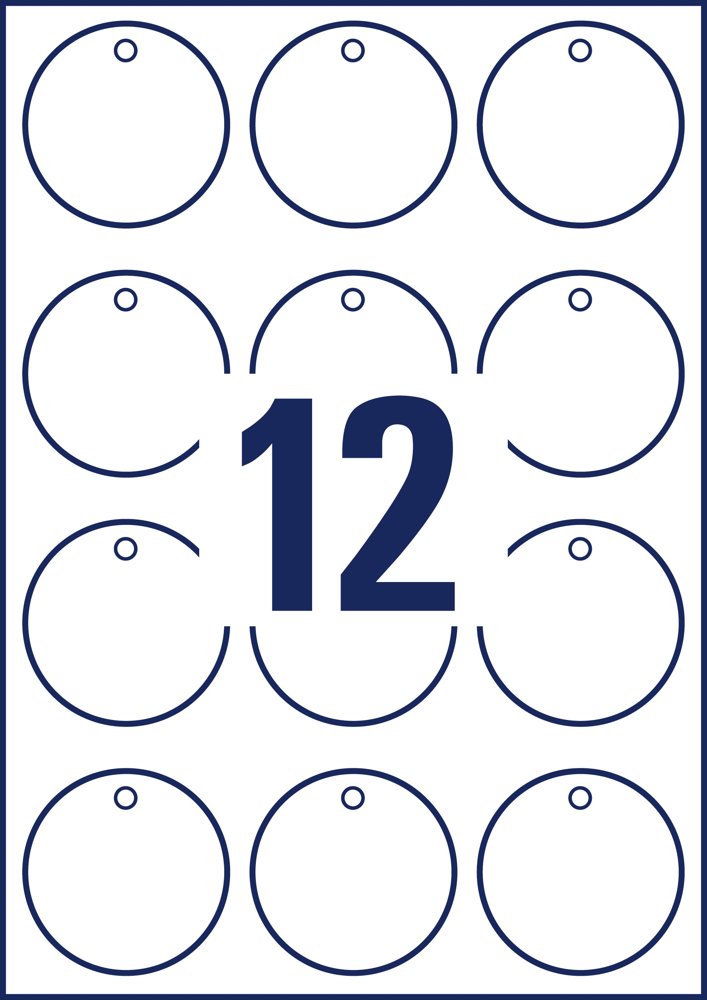 Etiketter Manilla 220g kartong Ø60mm hvit