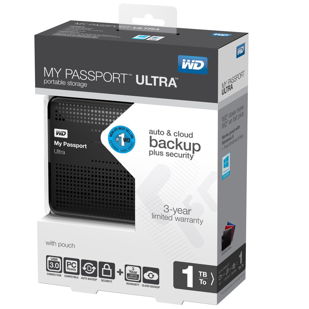My Passport Ultra leverer USB 3.0 ytelse og høy kapasitet i et strømlinjeformet design. Den har programvaren WD SmartWare™ Pro for automatisk sikkerhetskopiering til selve disken eller til din konto hos Dropbox™. Beskytt dine filer med passord og hardwarekryptering. En 3-års begrenset garanti og myk veske beskytter din disk. Den er den perfekte partneren for alle som behøver å ta med seg sine digitale filer når de er på reise.